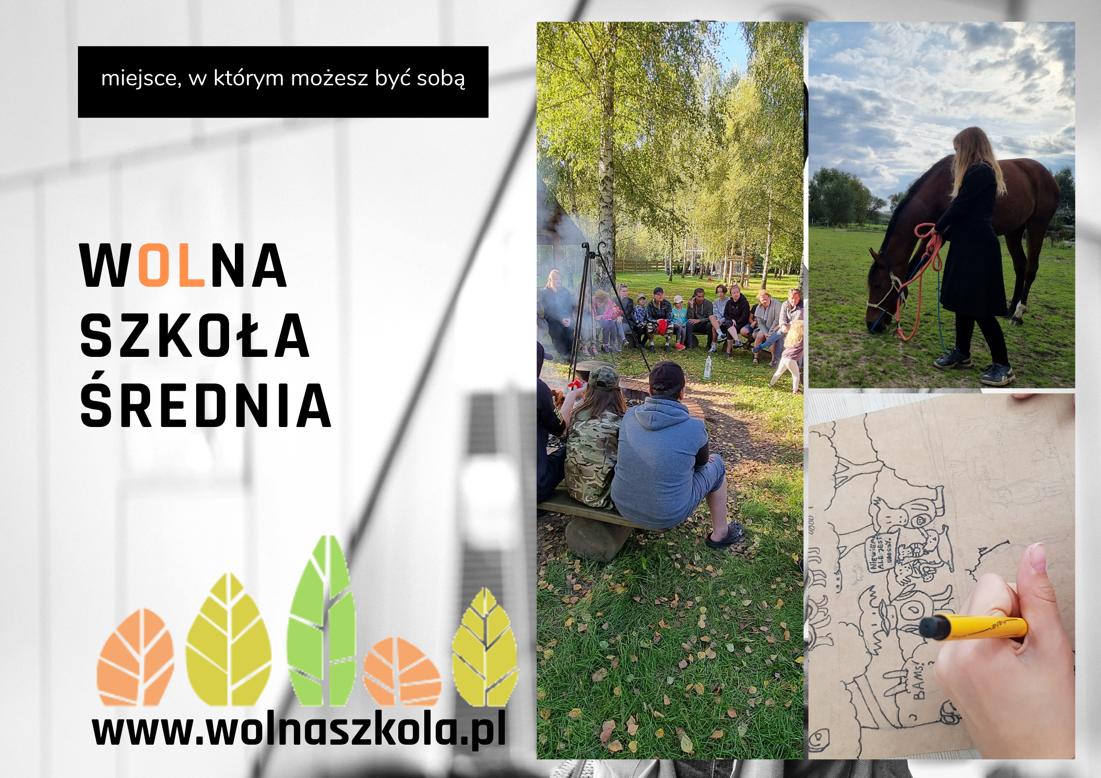 Potrzebują wsparcia, akceptacji i współpracy. Potrzebują pytać, wątpić i podważać. Potrzebują burzyć i budować własne, tworzyć. Dlatego powstała nasza wOLna szkoła średnia. To szkoła dla Was: dla tych, którzy chcą tworzyć szkołę inaczej, niż ta znana z systemu. Nasze liceum jest miejscem dla każdego, kto chce budować kreatywną społeczność, uczyć się i działać, zmieniać świat przy wsparciu i towarzyszeniu dorosłych, którzy chcą i potrafią być obok.